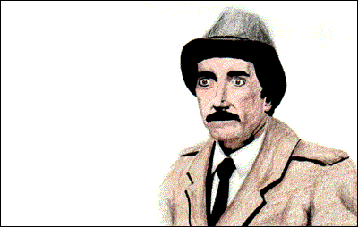 One of many pictures depicting Peter Sellers as the daft Inspector Clousou (spelling?)
