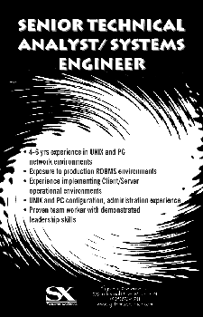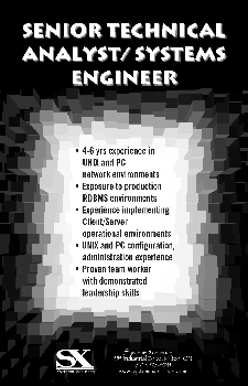 Two different designs for posters advertising positions available at Systems Xcellence at Job Fairs