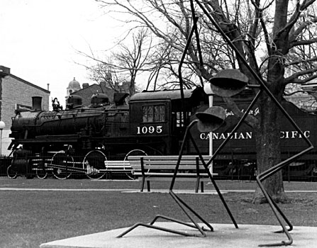 NEW VS. OLDThis is a photograph of the antique train and the modern sculpture in Confederation Basin in Kingston
